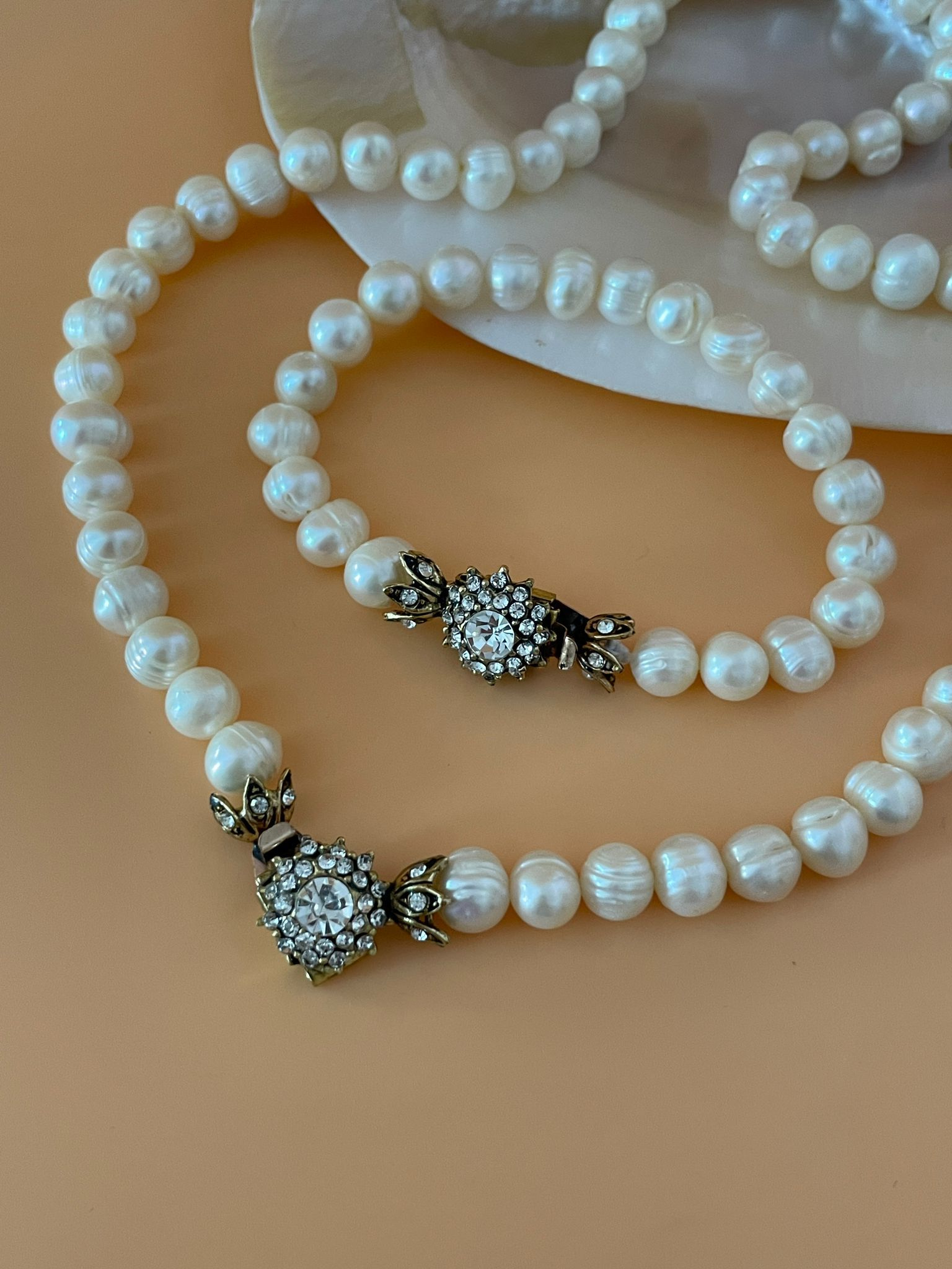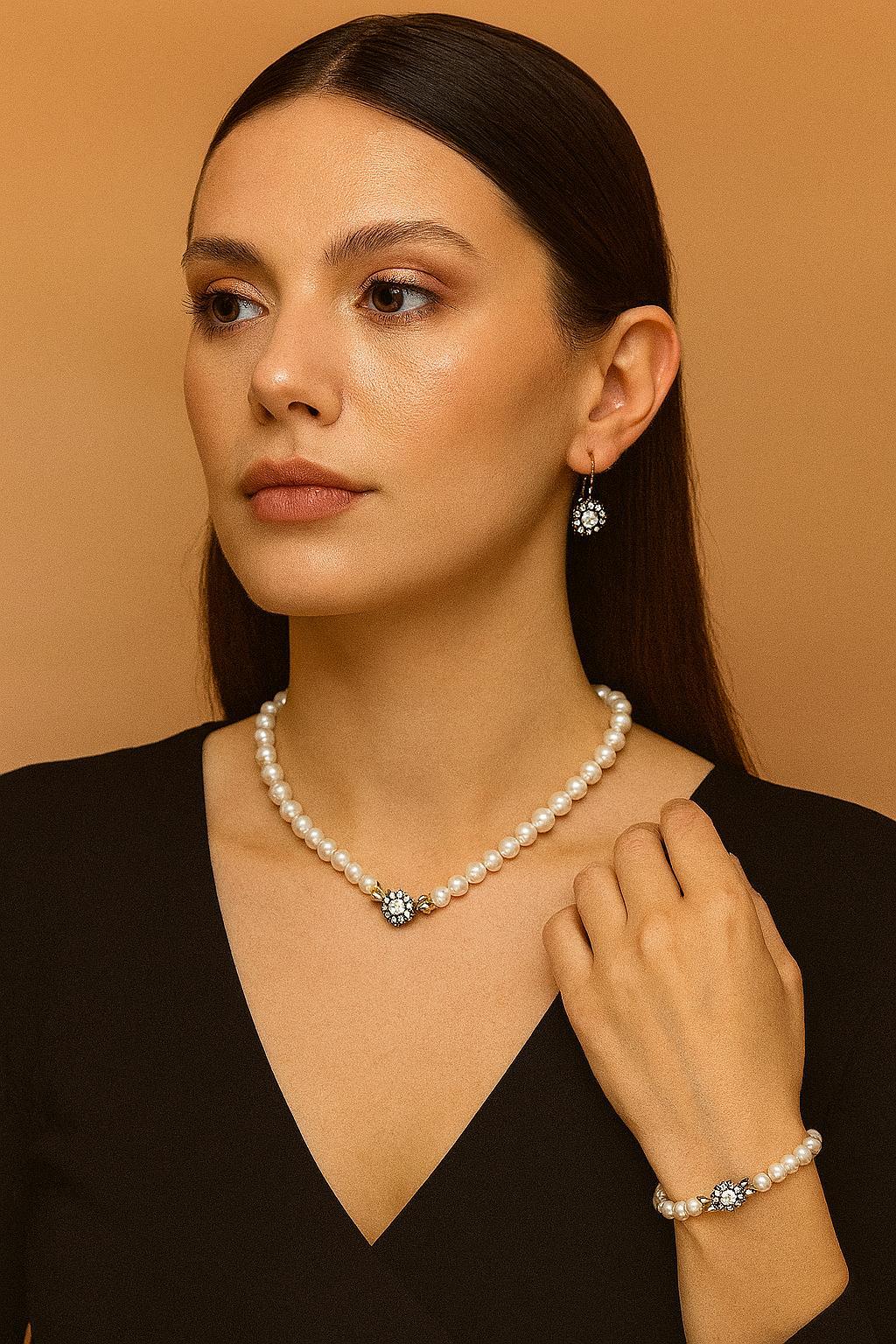 Ayzen Çiçek Model Taşlı İnci Set 50cm